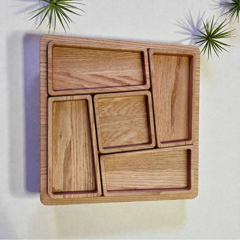 Praktiline ja samal ajal pilkupüüdev serveerimisalus, mis muudab suupistete pakkumise lihtsaks ja kauniks. Erineva suurusega süvendid võimaldavad mugavalt paigutada pähkleid, marju, juustu, maiustusi või muid väikseid suupisteid – kõik ühel alusel, kuid kenasti eraldatuna.